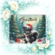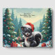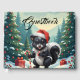 Tecknaden Skunk för jultomten - Lustigt Santa Hat Skunk med Candy cane och gåvor. Ge helgdag glädje med den här vackra julskunk-tecknaden! 🦨 som har vunnit en julhatt och hållit en candy cane och röd dekoration, står den här svarta och vita skunden i en snövinter-scen med dekorerad, vintergrön träd och festlådor. Perfekt för djur älskare, tecknad fläkt och alla som tycker om roligt och sött helgdag. Underbar för klistermärken, T-tröjor, mugg, julkort med mera.