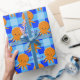 En söt tecknad av orange. Blått plaid mönster i bakgrunden. pappra rullar med baby djur inslagning. Redigera namn om du vill anpassa. Party-dekanter och presentidé för barn.