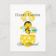 Påsk-biets tecknad kommer ut ur ett spruckt Påskägg med ett Påsk basket fyllt med färgfyllda Påskägg och täckt med rosett band Cute Barns tecknad design för Påsk. Enkel att anpassa genom att ändra texten.