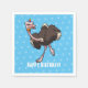 En lustig tecknad strutch på pappra servetter. Användan "Anpassa den här mallen" om du vill ändra texten "GRATTIS PÅ FÖDELSEDAGEN!" och skapa ett unikt, anpassat party-tillbehör. Napkins för ett firande, med en skum strutch med en födelsedagshygie, komplett med regnbågsstripe party hat och polka prickad blåsare.