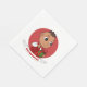Napkins med en illustration av ett sött leende lycklig flicka eller pojke, baby bär röda och vita kläder och håller kvar en present. Med redigerbar textmall för ditt namn eller meddelande utformar julens helgdagar