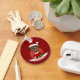 Nyckelkedja med en illustration av en söt, leende lycklig-pojke med glasögon, bär röd och vit Jultomten-dräkt och håller kvar en present. Med redigerbar textmall för ditt namn eller meddelande, utformar helgdagar för jul med röd bakgrund