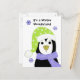 En söt julpenguin i en helgdag och scarf. Några snöflingor faller ner. Anpassa efter behov.