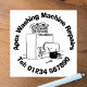 Tecknaden för installation och reparation av roligt Domestic Appliance & Tvätta Maskin har en bild av en underhållsman med huvudet inuti ett tvättande maskin! Anpassa till företaget namn och kontaktnummer.