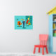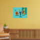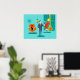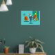 Älskling, jag är hemma! Den här Tecknaden Retro Space Ålder Ett par Poster får dig att känna avundsjuka på tecknaden par på ett utsträckt kanvastryck! Utformningen har en turkobakgrund med tealtegel och en oliv grönt konkamera. En slimmad, svart katt är sitta på en slimmad orange stol. Det finns en teal-, starbväggklocka och en tvåskiktslampa i nyans av gult, blått och svart. Framåt och mitt, det finns en framstående martini-villig affärsman i blå kostym och orange slips. Hans blondinska bombskal av en troféfru bär en röd tråd och håller en bricka martinis. Va-va-va-voom!