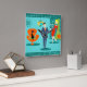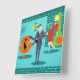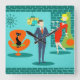 Älskling, jag är hemma! Den här Retro Space Age Tecknad Couple Wall CLock får dig att känna avundsjuka på tecknaden par på en väggklocka! Utformningen har en turkobakgrund med tealtegel och en oliv grönt konkamera. En slimmad, svart katt är sitta på en slimmad orange stol. Det finns en teal-, starbväggklocka och en tvåskiktslampa i nyans av gult, blått och svart. Framåt och mitt, det finns en framstående martini-villig affärsman i blå kostym och orange slips. Hans blondinska bombskal av en troféfru bär en röd tråd och håller en bricka martinis. Va-va-va-voom!