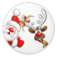 Tecknaden Santa och Reindeer Merry Christmass Lyck Knopp