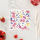 Pappra blöjor med färgat Blommönster på vit bas. Handdragen inslag, utspridd sammansättning.