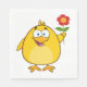 En tecknad chick som håller en blomma. Den här designen ser ut att vara effektiv på dessa Pappra servetter
