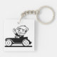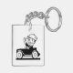 En klassisk vintage tecknade figurer i en klassisk bil. En rolig retro, old school tecknad. Svarta och vita tecknader.