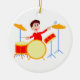 Tecknadpojke som leker drumset jagged kanter julgransprydnad keramik