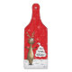 En glass skärbräda i rött med avbilda av en tecknadren och den är spänningen om den kommande snön besegrar.