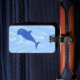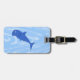 En blåtttecknadhaj på ett ljust - blått vågigt bakgrund.