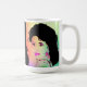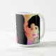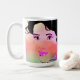 Färgrik teckning av kvinnans ansikte på mugg. Modern.