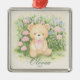 Vattenfärgsillustration av en nalle i en blomsterträdgård med vintage.