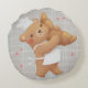 En söt illustration av en nalle som håller på en kroissande hatt och en apron