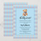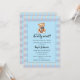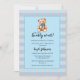 A soft teddy bear and blue plaid gingham baby boy baby shower invitation.