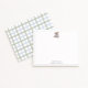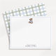 The back of the card features a soft blue and green plaid pattern, adding a refined, heritage-inspired touch that feels perfect for a baby boy’s nursery. This preppy nursery note card is ideal for baby thank you notes, newborn announcements, baby shower follow-ups, and thoughtful messages from a nursery. The classic color palette and traditional styling make it a beautiful choice for parents who love polished, timeless baby stationery.