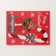 Indulge in the joy of a charming Teddy bear adorned with a festive candy cane hat, standing beside a large candy cane embellished with a bow. This delightful puzzle is an ideal holiday gift to tuck into a stocking or present as a seasonal surprise.