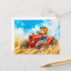 Teddy Bear Driving a Tractor in Wheat Field Vykort