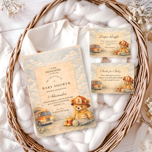 Teddy Bear Firefighter Baby Shower Inbjudningar