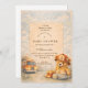Celebrate a little hero on the way with this cute firefighter baby shower design, illustrated in a warm, storybook style. Featuring classic firefighter details like a helmet, jacket, boots, and fire truck accents, the artwork feels sweet, cozy, and timeless rather than loud or cartoonish.