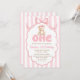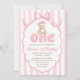 Teddy Bear Girls Pink Bow Stripes 1st Birthday Inbjudningar