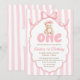 Teddy Bear Girls Pink Bow Stripes 1st Birthday Invitation