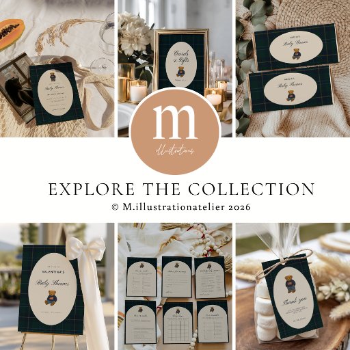 Add a refined touch to your celebration with this elegant preppy plaid teddy bear baby shower menu template. Designed with a timeless tartan plaid pattern and a charming teddy bear illustration, this menu brings classic sophistication to your baby shower table decor.