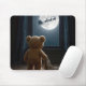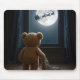 A teddy bear gazes out the window at the full moon, with Santa's sleigh silhouetted against the night sky, as the softly lit room creates a cozy and magical atmosphere