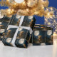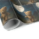 A teddy bear walks along a path in a dark, wooded landscape, holding a string connected to a glowing full moon that looks like a balloon