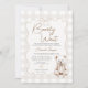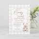 Teddy Bow Neutral Gingham Bearly Wait Baby Shower Inbjudningar