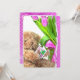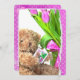 Teddybjörn som läser en inbjudan till babyflickans dop.