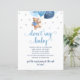 Vattenfärg Teddybjörn Blå och Silver Ballonger Baby Shower Säga Inte Baby Lek Poster.