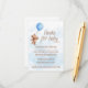 En söt teddybjörn som håller i en blå ballong. Vattenfärgshimmelbakgrund. "Böcker för bebis" är en del av designelementet. Den nuvarande dikten är min immateriella egendom. Du får använda den på detta kort, men vänligen duplicera eller kopiera den inte för användning någon annanstans. Du kan också redigera texten för att använda din egen formulering istället, ändra textens färg eller ändra storlek/positionera björnen. © Kimbellished, LLC
