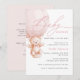 Söt och bedårande akvarell teddybjörn i en varmluftsballong i modern och script typografi för inbjudan till flickors baby shower med detaljerad information på baksidan och QR-kod för registret.