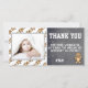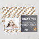 Söta födelsedags tacks kort för att tacka dina gäster. Kortet har ett sött teddybjörn mönster och en liten teddybjörn. Anpassa kortet med ditt foto och namn. Du kan också ändra tacktexten och skriva din egen. Texten är i trendig och modern vit färg. Bakgrunden är en modern grå kritskrift struktur. Teddybjörn tema.