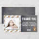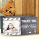 Sött födelsedags-tack-kort för att tacka dina gäster. Kortet har ett sött teddybjörn-mönster och en liten teddybjörn. Personifiera kortet med ditt foto och namn. Du kan också ändra tacktexten och skriva din egen. Texten är i trendig och modern vit färg. Bakgrunden är en modern grå kritskriftstruktur. Teddybjörn tema.