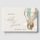 Lägg till en personlig touch till din baby shower-firande med dessa stilrena och minnesvärda partiföremål! Designen har en teddybjörn i grön varmluftsballong på beige bakgrund.