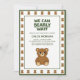 Fira den sötaste ankomsten med denna "We Can Bearly Wait" ( Vi kan knappt vänta ) -björn baby shower-inbjudan, designad med en lekfull men modern estetik. Med en charmig illustrerad teddybjörn och en fantasifull kant av små björnar ger denna inbjudan en mysig, designspråkad känsla till din fest.