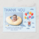 Söt teddybjörn ballonger barn foto födelsedag tack vykort. Söt teckning av en teddybjörn med färgglada ballonger och moln. Lägg till ditt foto, text och namn.