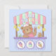 A cute illustration of a teddy bear with an ice cream cone in an ice cream parlor