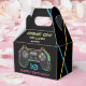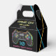 A bright retro neon colored video game controller birthday party theme. Ideal for anyone who loves video games, computer gaming, video game theme illustrations. A perfect birthday party theme for a gamer. A retro look gaming theme birthday party favor box perfect for boys girls who loves video games!