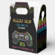 A bright retro colored video game controller birthday party theme. Ideal for anyone who loves video games, computer gaming, video game theme illustrations. A perfect birthday party theme for a gamer. A retro look gaming theme birthday party favor box perfect for boys girls who loves video games!