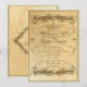 90-årsfirande Födelsedagsfest Tvåsidiga inbjudningar och annonser. Det finns ett komplett utbud av produkter som kan koordineras med denna samling. Detta är en vacker formell, elegant kalligrafisk födelsedagsinbjudan för en speciell fest som matchar alla bröllopsinbjudningar med samma namn. Du kan anpassa alla samordnade produkter och de kommer att matcha. Använder ny konst för att återskapa utseendet på en vintage bröllopsinbjudan. "Åldrat" tefärgat pergament bildar bakgrunden till en sepia chokladbrun etsning av vackra böjda banderoller med 1800-tals typografisk stil böjda ord "Ditt närvaro är önskvärt vid" och i en annan cirkusstil-teckensnitt "En para bröllopsfest För" och en antik text konst "och". Det finns en övre och undre etsning skulpterad ram med barocka banderoller, blomsterväv, blommor, blad och ett snäckmotiv. Inuti en böjd övre och undre virvlad blomsterram är din festinbjudan text. Den kalligrafiska virvel ornamentramen är en lätt och luftig touch. På baksidan finns din monogram eller initial med samma tefärgade bakgrund och en ram av kallig