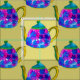 Den vita kitschiska tekannans utseende illustreras med ljus. Färgfull och söt te-älskare design för människor som kärlek en bra kopp av te.