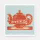 En rolig design för alla som kärlek kan ta sig samman med vänner och dricka te. En vektorillustration av en tekanna med ett band inlindat runt den. Texten på menyfliksområdet låt oss ihop och slurpa te.