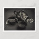 Vykort: tekanna, skålar och silver - i svartvitt. Originalfotografi/Art/design efter work4dröm.