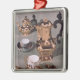 Tekanna, sockerbunke, chokladkruka och mugg julgransprydnad metall