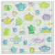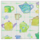 En glad väv som dekoreras med en mönster av tekannor, kaffekötter och kopp accentuerad med blommor och en pläterad bakgrund som illustreras med vattenfärg. Söt hemdekanter för alla som njuter av kaffe och te!